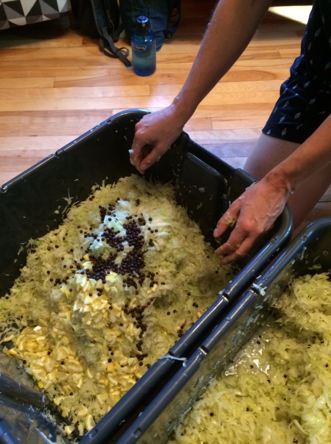 Pourquoi une choucroute collective ? Parce que ça nous permet d’utiliser la synergie du groupe pour produire plus et plus vite que ce que chacun-e des participants-es parviendrait à faire s’il-elle fabriquait sa choucroute seul-e dans sa cuisine. Parce que c’est le fun de couper et brasser tous ces beaux choux en compagnie de personnes qui aiment ça !